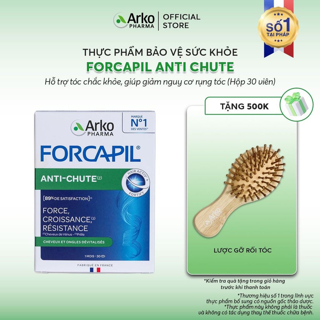 Viên uống FORCAPIL ANTI CHUTE - Hỗ trợ tóc chắc khỏe, giúp giảm nguy cơ rụng tóc.